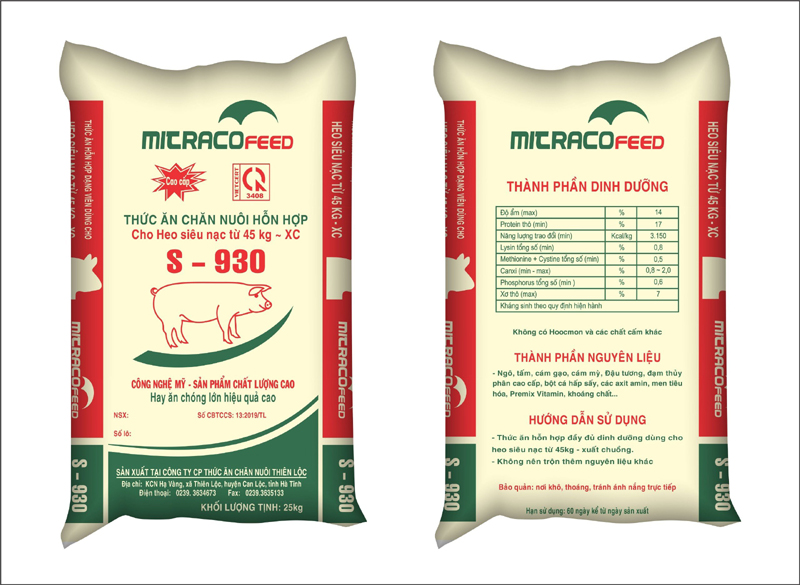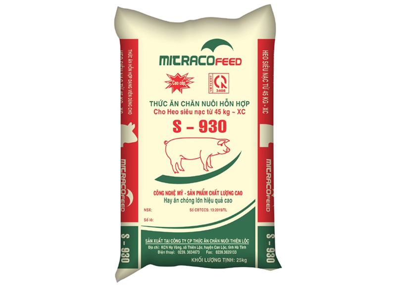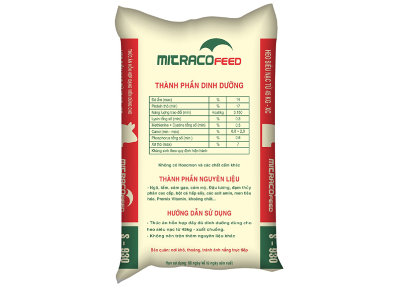 Thức ăn chăn nuôi hỗn hợp dùng cho heo siêu nạc từ 45kg – xuất chuồng Mitraco feed S – 930